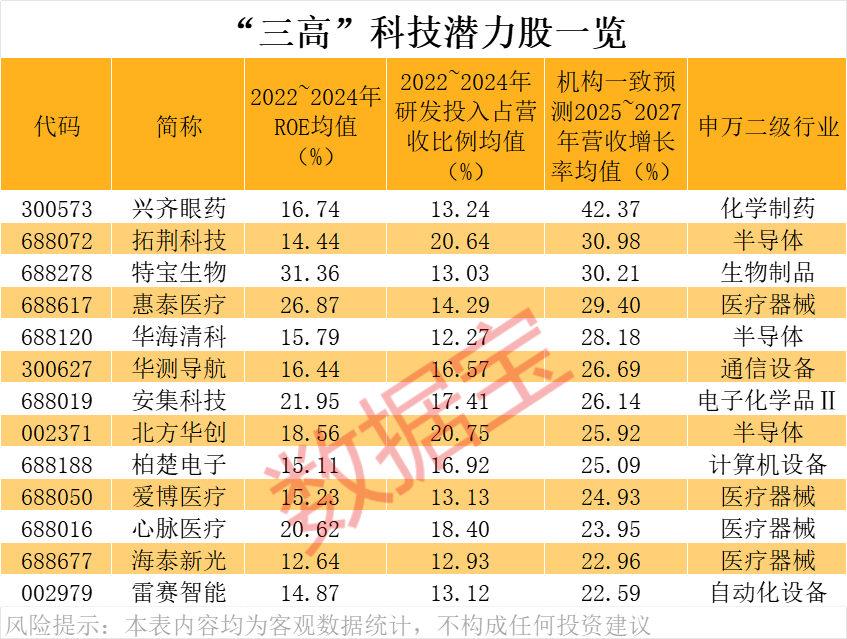 高盈利+高成长+高研发!13只科技潜力股出炉