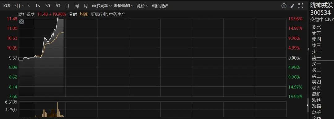 医药板块盘初集体拉升,陇神戎发一度直线拉升至20%涨停。IP经济概念股京华激光再度涨停,走出6天5板。