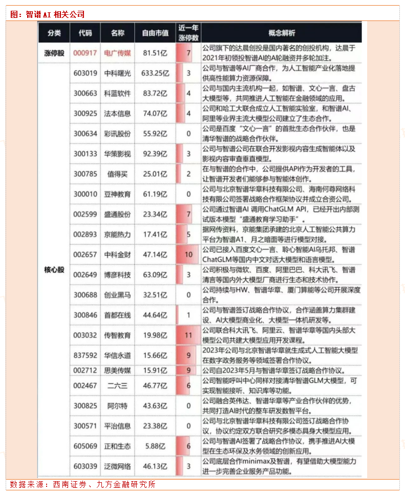智谱AI相关公司整理如下表: