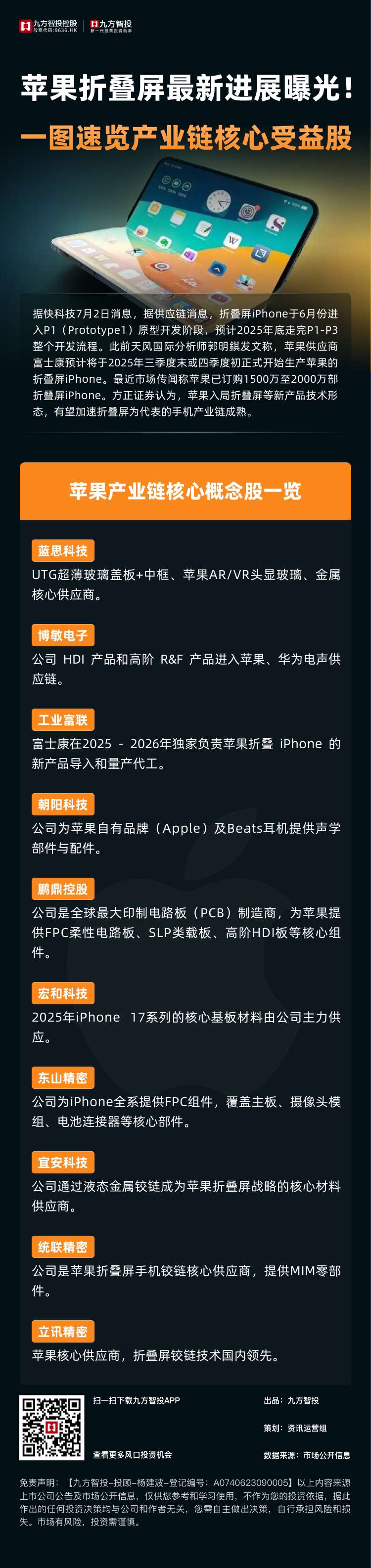 苹果折叠屏进展曝光!一图速览产业链核心受益股