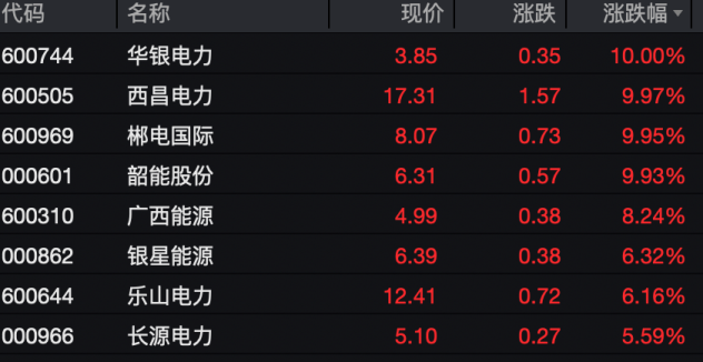 电力板块走强,华银电力、西昌电力、郴电国际等多股涨停,另有多股大幅上涨。