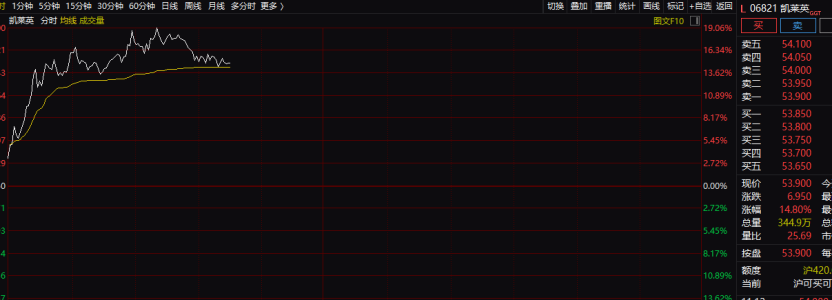 港股市场盘中走低,不过仍有不少股票大涨,其中凯莱英港股盘中一度大涨超19%。