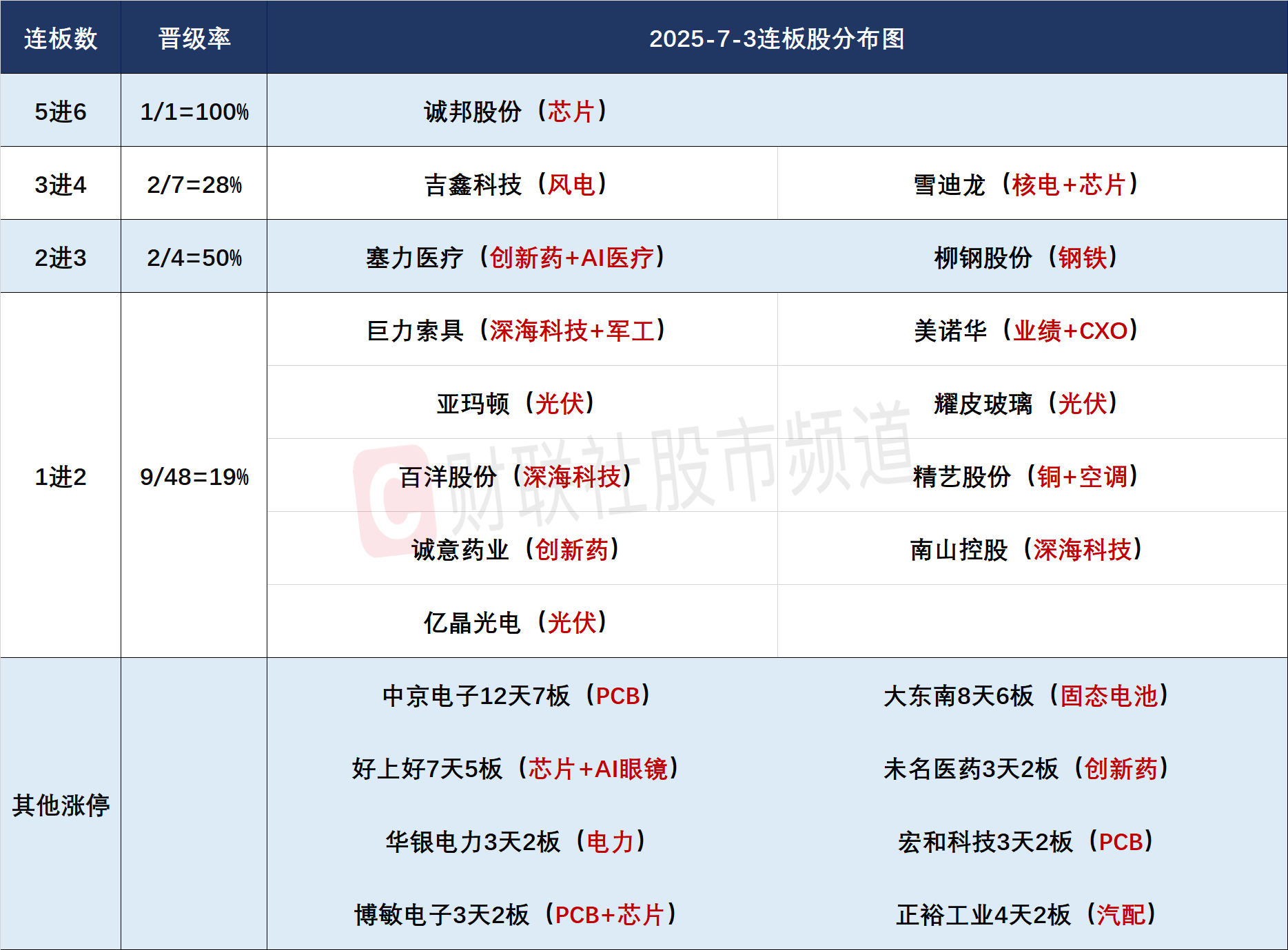 7月3日连板分析:午后情绪回暖!连板晋级率超四成