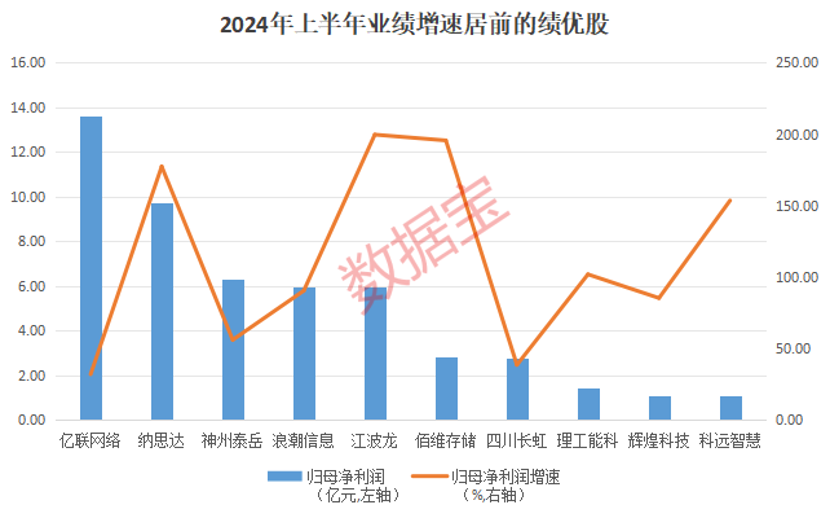 从上半年业绩来看,在归母净利润超亿元的个股中,江波龙、佰维存储、纳思达、科远智慧、理工能科业绩翻倍。