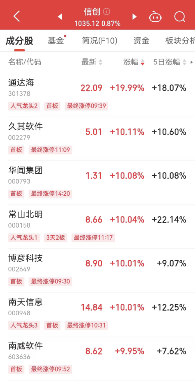 9月12日,信创板块逆市上涨,通达海、久其软件、华闻集团、常山北明等多只个股涨停。