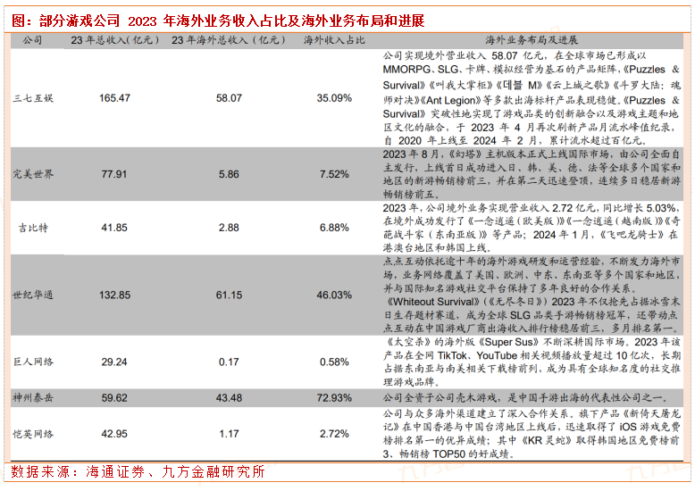 2)专注海外市场的优质游戏厂商:神州泰岳(壳木游戏)、世纪华通(点点互动)、宝通科技(易幻网络)。