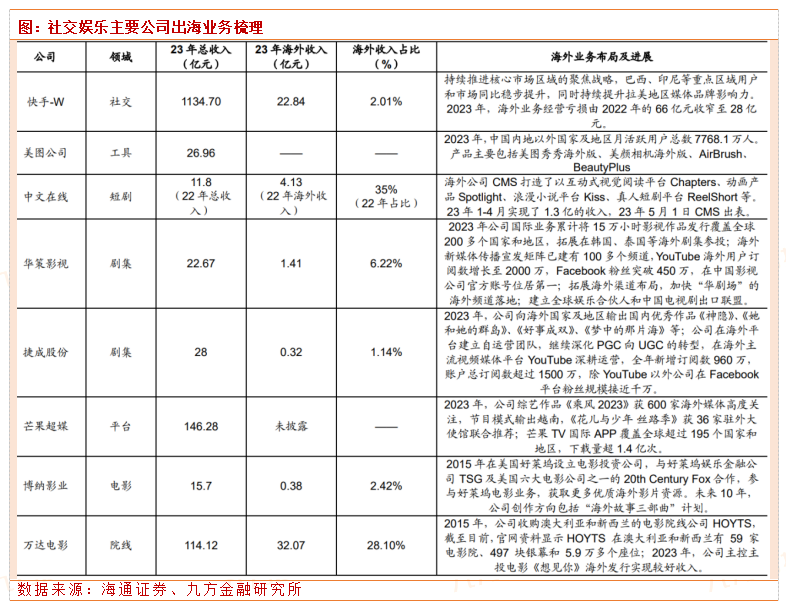 2)内容出海:剧集(华策影视、捷成股份);电影(博纳影业、万达电影(澳洲 Hoyts 影院发展));平台(芒果超媒)。