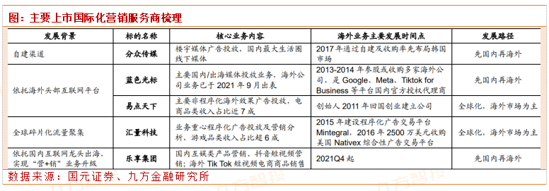 1)出海营销:易点天下、蓝色光标、省广集团。