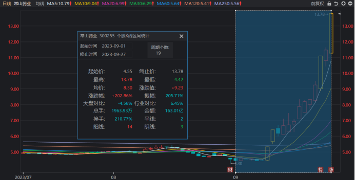 注:常山药业本月以来股价上涨200%(截至9月27日收盘)