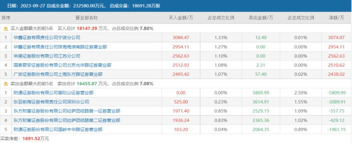 从资金面来看,今日多路游资混战常山药业。据9月27日龙虎榜数据,其上榜营业部席位成交额近3.5亿元。买入榜前五席位中,知名游资席位华鑫证券宁波分公司、国泰君安证券北京光华路、广发证券上海东方路分别净买入近3000万元、2500万元、2400万元,不过,在卖出榜前五席位中,其也有东亚前海深圳分公司、财通证券温岭中华路两路游资席位及两席“拉萨天团”在列。