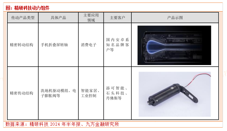 此外,公司供货AI眼镜的结构件。公司微传动模组技术门槛很高、而且稀缺、单机价值量15%左右、约200-300元人民币。眼镜架上的高清摄像头伸缩调焦,用到mim技术,还要用到微电机、微齿轮箱,精研把MIM件+微电机+齿轮箱一起做成模组,客户已经覆盖苹果、meta、谷歌、华为、小米等全球头部,卡位领先且稀缺,目前独家配合A客户在研AI眼镜传动模组。高精密微传动模组未来也将用于人形机器人,市场空间非常广阔。折叠屏铰链已覆盖主流安卓系客户,华为、三星,荣耀等行业重点厂商,也在配合A客户在研折叠屏铰链。