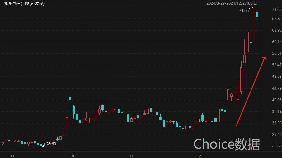 数据电缆国家标准起草单位兆龙互连同期机构来访接待量68家。二级市场方面,自9月低点迄今兆龙互连股价累计最大涨幅180%。兆龙互连12月27日接受机构调研时表示,高速互连业务市场保持着景气的市场需求,目前公司的高速产品订单处于相对饱和的状态,根据市场需求以及部分客户的趋势线指引,预计明年高速产品市场仍会保持乐观的市场需求。单通道112G产品已经陆续批量交付中。随着市场对高速率产品需求的不断提升,其收入增长潜力较大。兆龙互连11月7日在互动平台表示,公司高速产品生产线已符合生产传输速率到达800G及以下的高速电缆及连接产品的要求,采购的高速产品生产设备也在陆续交付调试中,公司将根据客户需求、业务拓展等情况合理推进扩产计划。