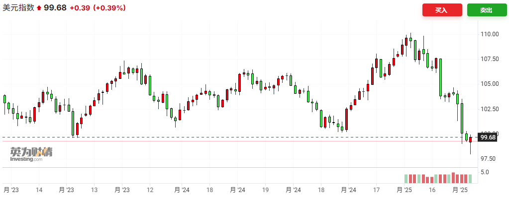 本周早些时候,美元指数跌至三年来的新低,一度跌破98关口。原因是美国政策不确定性加剧,引发了人们对美元作为世界储备货币地位的质疑。