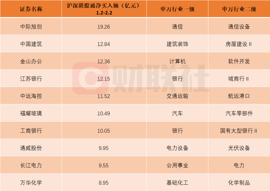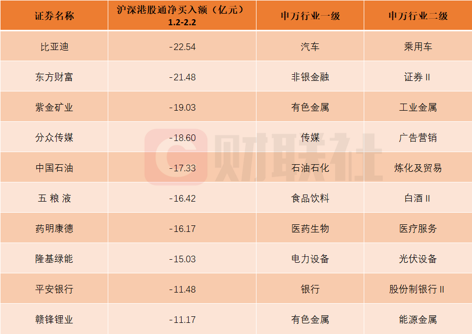 据Choice数据统计,1月2日至2月2日期间,北向资金累计净买入额前十位个股分别为中际旭创、中国建筑、金山办公、江苏银行、中远海控、福耀玻璃、工商银行、通威股份、长江电力和万华化学,净买入额均超8亿元。北向资金1月以来累计净卖出额前十位个股分别为比亚迪、东方财富、紫金矿业、分众传媒、中国石油、五粮液、药明康德、隆基绿能、平安银行和赣锋锂业,净卖出额均超11亿元,详细情况见下表:
