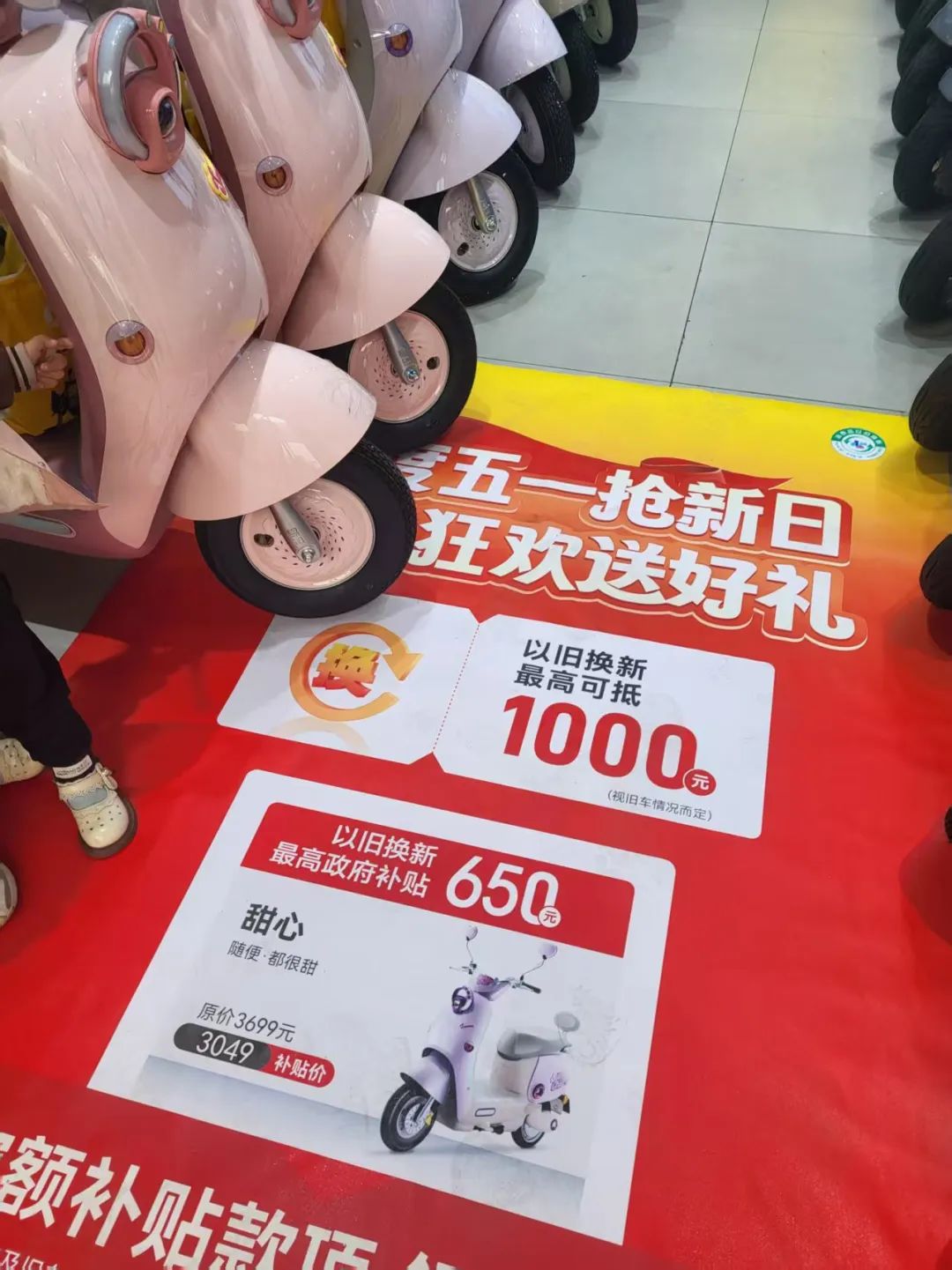 在国补政策的推动下,大部分消费者选择以旧换新的方式购置新车,可获得500至650元补贴。结合旧车残值,售价在2000元左右的两轮车,实际花费仅1000多元,销售火爆导致部分型号已经出现断货。