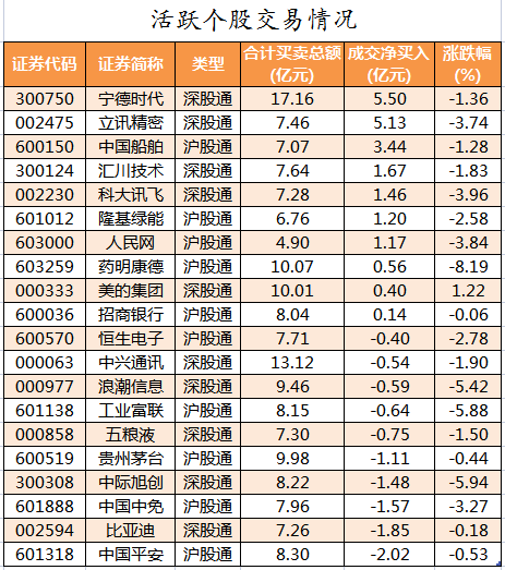 单日来看,北向资金今日成交额为1196.14亿元,成交净卖出6.42亿元。其中,沪股通净卖出0.77亿元,深股通净卖出5.65元。