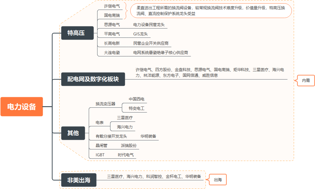 国内方面重点项目及配套招标持续落地,直接利好核心站内、站外设备及材料。海外方向,可关注非美国业务为主的出海企业在情绪“错杀”后的布局价值。