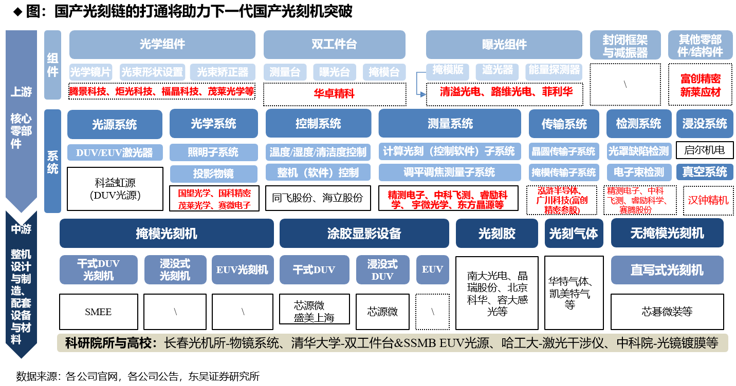 光源系统:福晶科技;光学系统:茂来光学;双工件台:华卓精科
