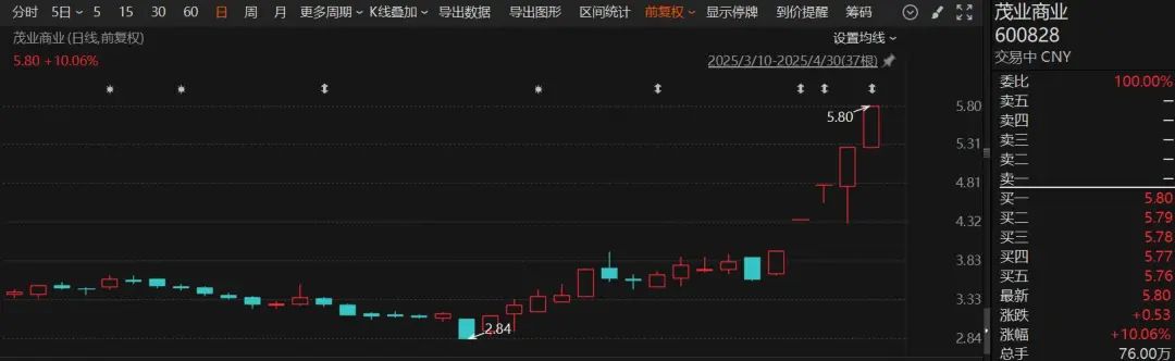 零售板块盘初活跃,其中茂业商业直线拉升涨停,走出5连板。算力租赁概念走强。