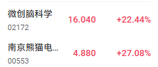 受益于市场多重利好,截至发稿,南京熊猫电子股份(00553.HK)涨27.0%、微创脑科学(02172.HK)涨22.44%。