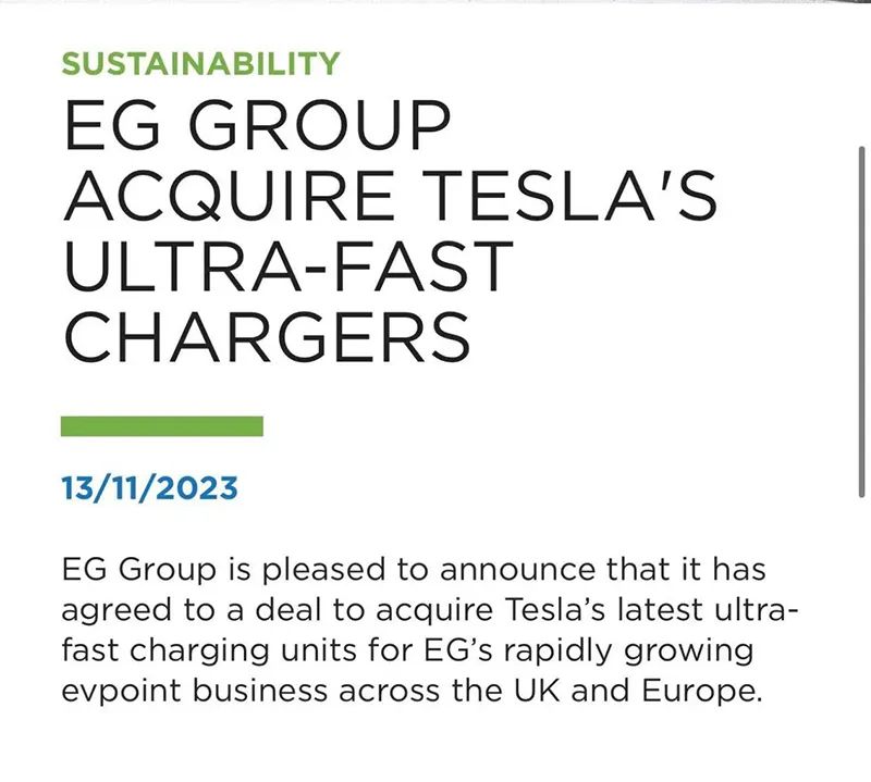 英国加油站运营商EG集团近日宣布,将购买特斯拉超级充电桩,以扩大其在欧洲的电动车充电网络。