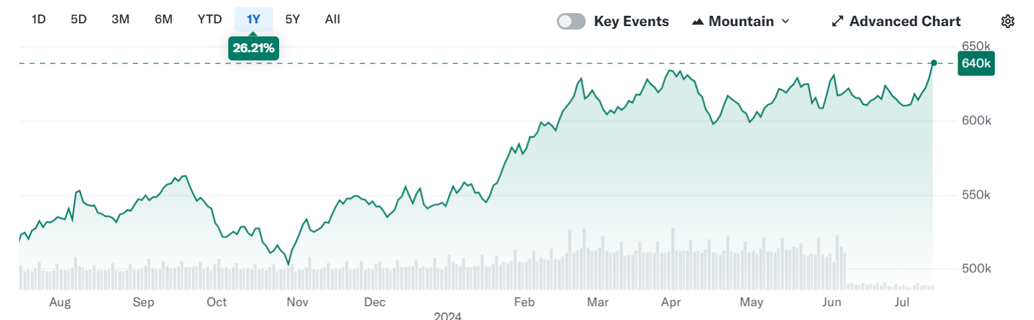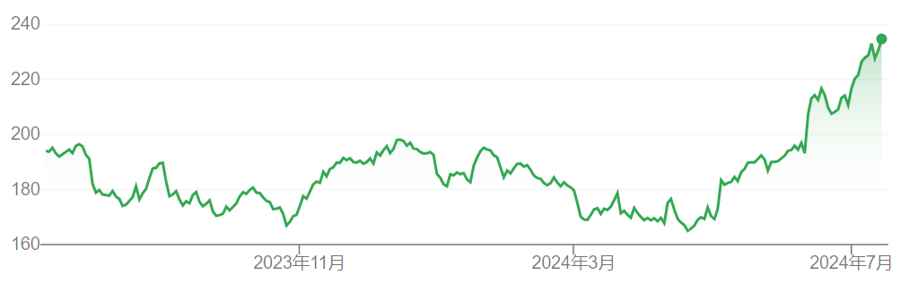 同时,苹果股价近日的回升也带动了伯克希尔的股价上涨。自今年3月底以来,苹果股价累计上涨了37%,尤其是在6月苹果公布其AI战略之后,苹果股价更是加速上涨。苹果是巴菲特的最大持仓股,占伯克希尔股票投资组合的44.5%。