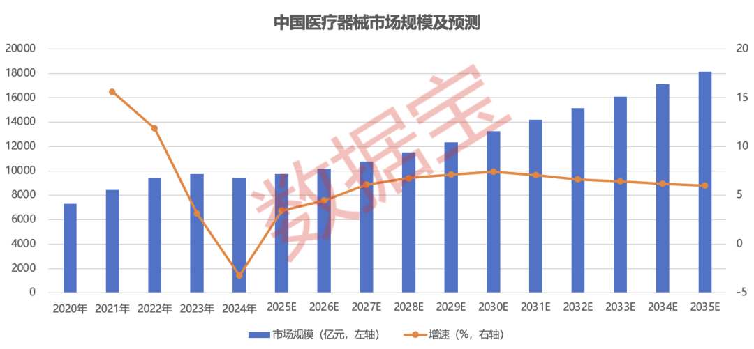 根据弗若斯特沙利文数据分析,2020年至2024年,中国医疗器械总体市场规模已从7298亿元人民币增至9417亿元人民币,年复合增速为6.6%。预计到2035年,中国医疗器械总体市场规模将达到18134亿元人民币,2025年至2035年,中国医疗器械市场规模年复合增速为6.41%,复合增速超过全球医疗器械市场规模的预测增速5.96%。