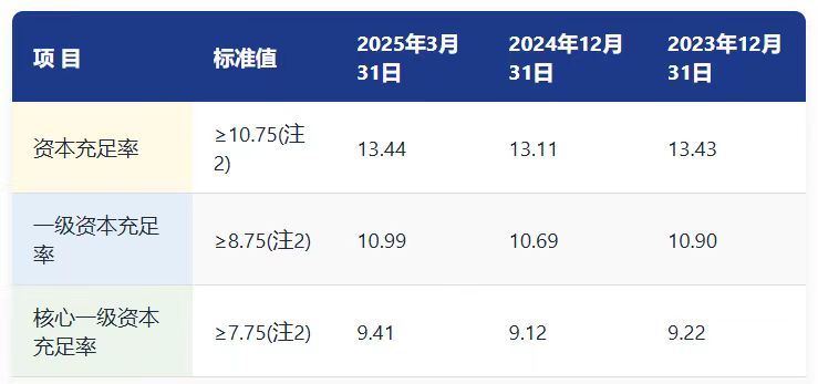 平安银行坚持高水平派息分红的底气,除了来源于对自身业务转型成效的信心,还来自于资本充足的“定心”。2025年一季度,平安银行核心一级资本充足率升至9.41%,较2024年末上升0.29pct;一级资本充足率10.99%,资本充足率13.44%,均创历史新高。