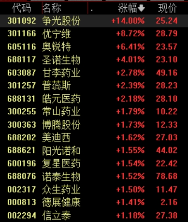 6月26日,减肥药板块盘中大幅拉升,截至发稿,争光股份涨超10%,优宁维涨超8%,奥锐特、圣诺生物、甘李药业等跟涨。