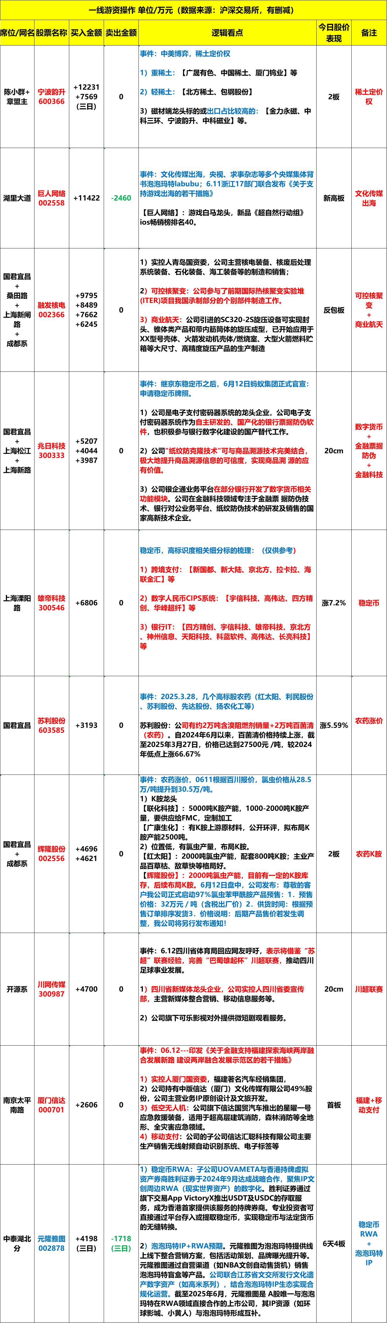 2)资金性质:外资买1.2亿元;游资国君宜昌买9795万 +桑田路买8489万 +上海新闸路买7662万+成都系买6245万。