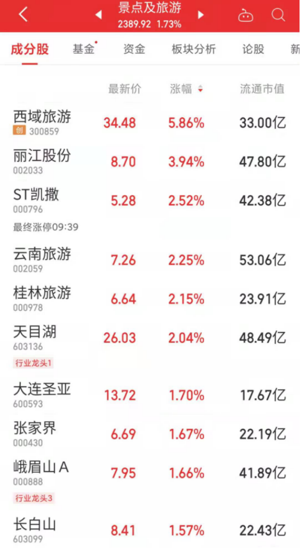 7月8日,受通信行程卡查询时间范围由14天调整为7天消息影响,A股景点及旅游股全线飘红,丽江股份、西域旅游、张家界、天目湖等股纷纷上涨。
