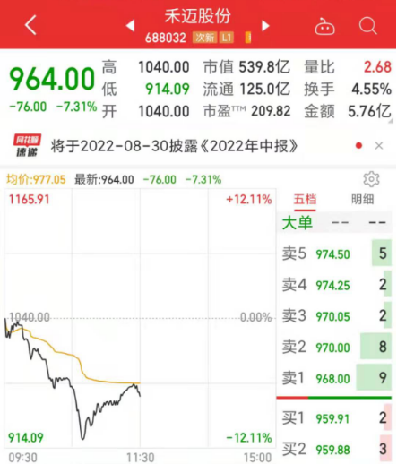 7月8日,禾迈股份高位回撤,退出千元股行列。禾迈股份为“史上最贵新股”,公司主营业务涉及光伏微型逆变器。