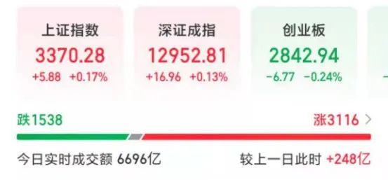 7月8日,上证指数早盘窄幅整理,宁德时代冲高回落,创业板指承压。截至午间收盘,上证指数涨0.17%,报3370.28点;深证成指涨0.13%,报12952.81点;创业板指跌0.24%,报2842.94点。