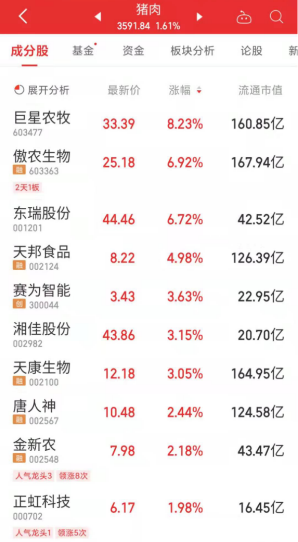 7月8日早盘,牧原股份、温氏股份、新希望齐创阶段新高,巨星农牧盘中刷新历史新高。
