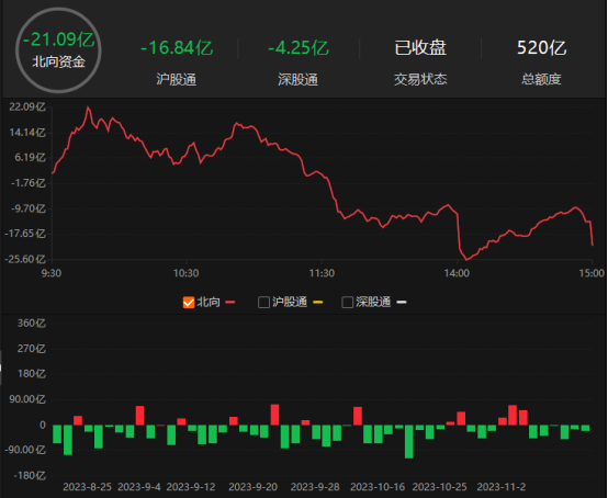 1)北向资金动向:11月14日净卖出21.09亿元。中国平安、长江电力、兴业银行分别遭净卖出5.11亿元、2.65亿元、2.21亿元;中际旭创逆势获净买入1.45亿元。
