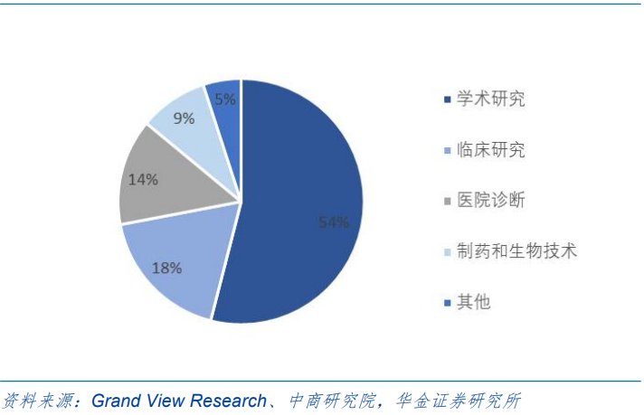 中游:测序服务以及生物信息数据分析服务;中游服务环节应用市场广泛,不同应用市场发展成熟度差异化大,商业可变现价值高,因此市场参与者众多。