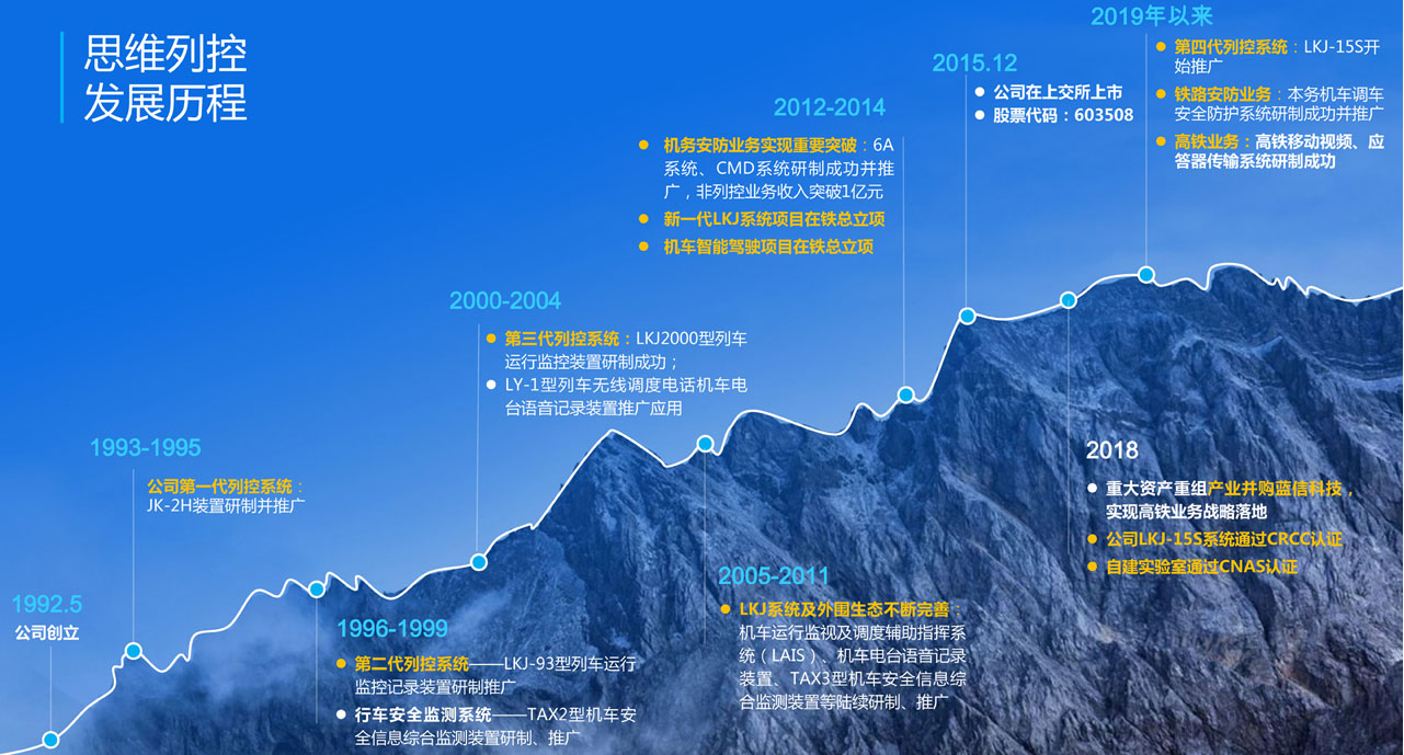 思维列控立于1992年,1994年开始,公司的JK-2H监控装置被铁道部认定为机车安全控制装备,并在全路推广应用。2019年,思维列控收购蓝信科技,主要从事高铁相关列车控制系统。自此,公司业务从传统机车,向高铁业务拓展。