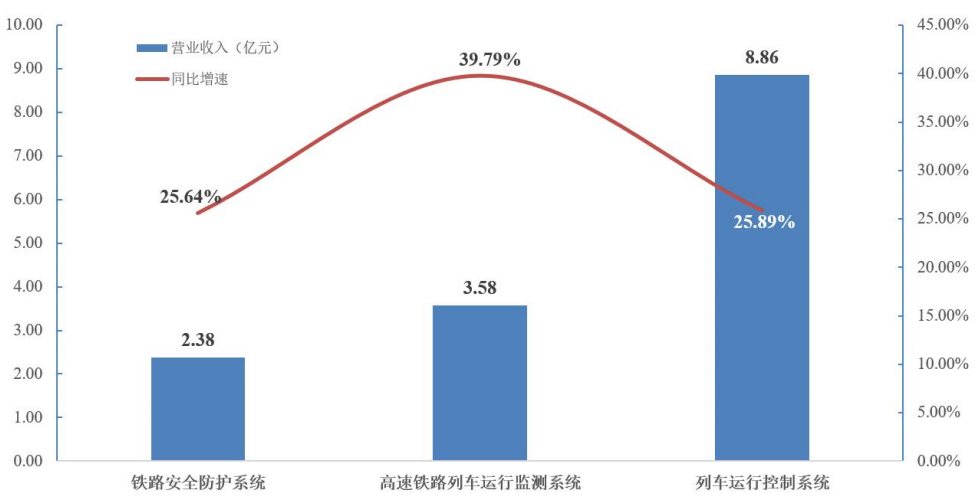 列控系统实现营收8.9亿元,同比增长25.9%,主要系下游客户加大设备更新改造投资,特别是LKJ无线数据换装系统和LKJ系统配件采购增加,高毛利的新产品销售占比提升,同时公司推进国产化替代,材料成本下降,毛利率提升3.4pp至66.5%;