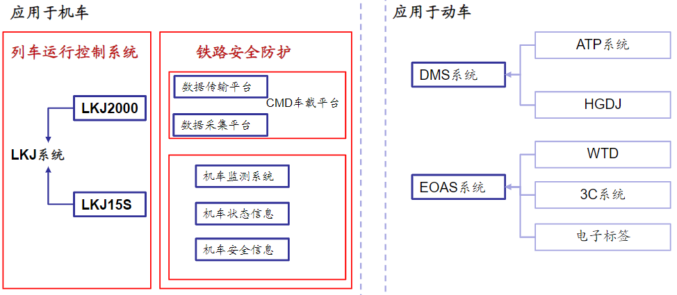 列控系统的主要产品包括:LKJ2000装置、LKJ-15S装置、TAX装置、LAIS车载设备、LKJ无线数据换装系统等;