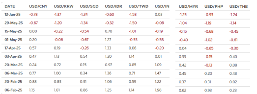 美元指数今年以来已下跌超9%,且市场预计其在未来数月将进一步走弱,这将利好亚洲货币。Maybank高级外汇策略师菲奥娜·林(Fiona Lim)表示:“在我们预期美国经济放缓、美联储降息,且特朗普政府推行各类保护主义措施的环境下,周期性因素与结构性因素共同作用,将使美元维持下行趋势。”