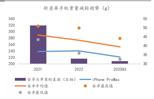2023Q3折叠机重量减轻接近iPhone15Pro Max