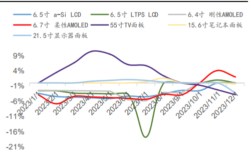 折叠屏是OLED趋势性创新方向,大陆OLED面板成长迅速。2023H2面板库存去化进入尾声叠加终端需求的温和复苏,面板价格触底反弹,其中小尺寸面板反弹速度最快,涨幅较大,2024年有望延续高增长态势。