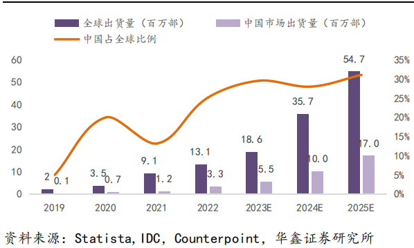 ②苹果入局,华为引领国内厂商加速追赶,2024年折叠屏手机或将呈现爆发式增长。