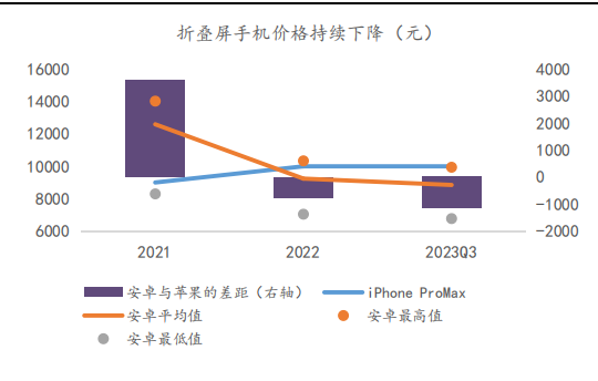 2023Q3折叠手机最低起售价已低于iPhone旗舰机