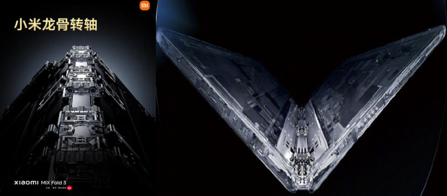 铰链结构示意图(左图:小米Mix Fold3;右图:华为Mate X2)