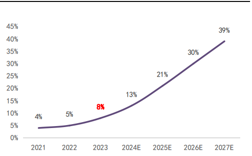 ①折叠屏手机是全球手机市场中唯一的增长细分赛道,渗透加速,预计2024年,中国市场销量达960万部,同比增长41%;