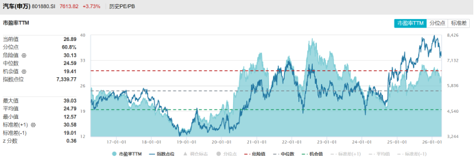 此外,从估值层面来看,汽车板块(申万一级)指数目前市盈率26.89倍,处于近十年60.8%分位,市净率2.46倍,处于近十年71.91%分位。细分板块方面,汽车服务、商用车、汽车零部件、乘用车板块市盈率分别为51.35倍、33.46倍、26.76倍、25.34倍、24.85倍,各处于近十年70.7%、57.4%、57.94%、55.87%分位。