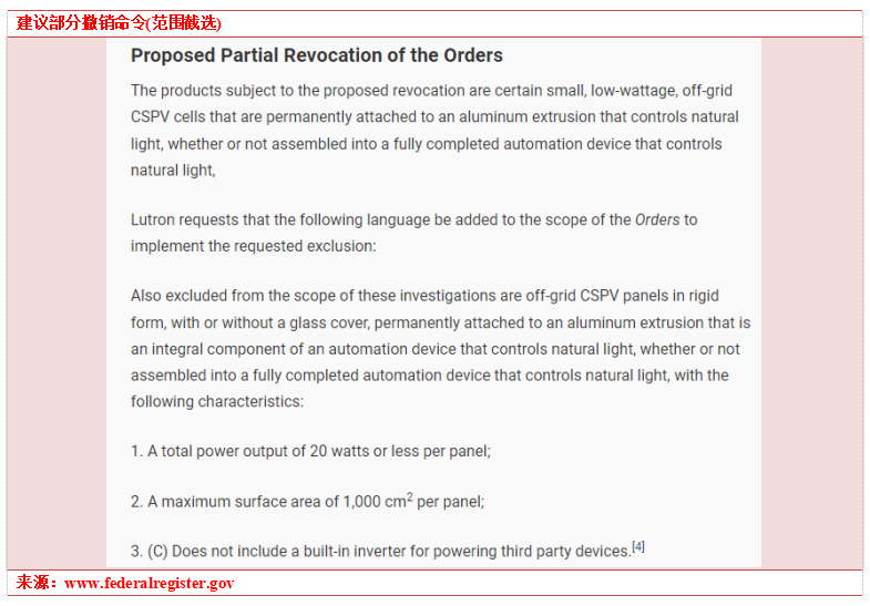 2.美国商务部拟部分撤销中国光伏电池的反倾销税和反补贴税