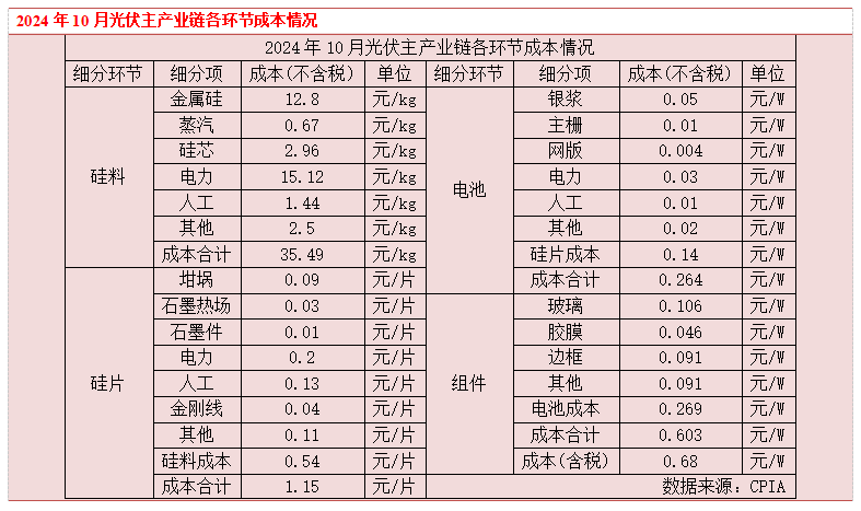 根据中国光伏行业协会,经汇总、统计、分析与整理,测算出2024年10月份的光伏组件成本,期望给市场一个权威的成本数据,供全行业和政府监管部门参考,促进行业健康发展。