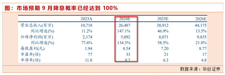 8月25日,公司发布《2024年半年度报告》,2024上半年公司实现营业收入107.99亿元,同比增长169.70%;实现归母净利润23.58亿元,同比增长284.26%。其中单二季度营收59.56亿元,同比增长174.88%,环比增长22.98%,保持快速增长;实现归母净利润13.49亿元,高于此前预告中值13.16亿元,同比增长270.82%,环比增长33.70%。